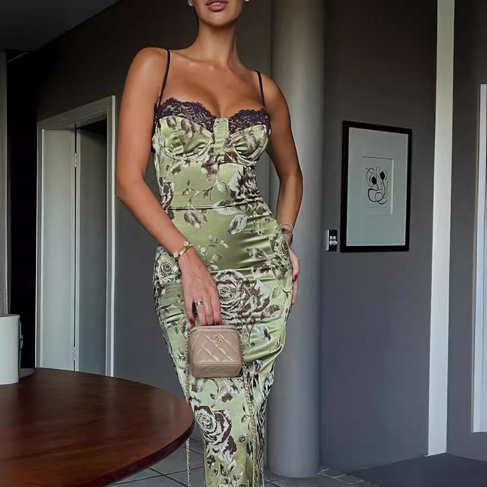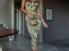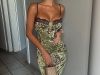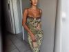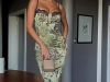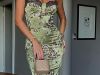 Bedrucktes, gestricktes, mittellanges Etuikleid mit Schleife