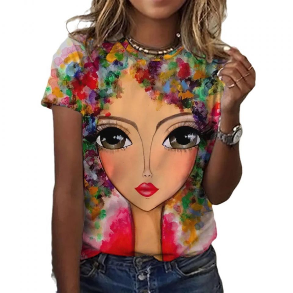 Bunter Kurzarm-Top im Harajuku-Stil