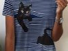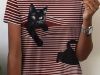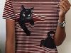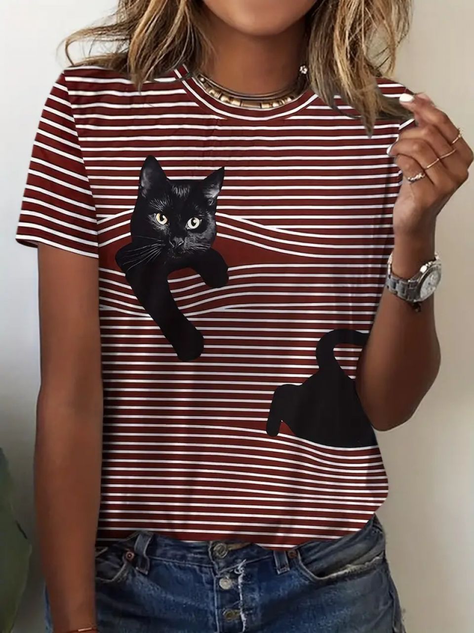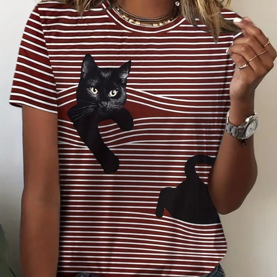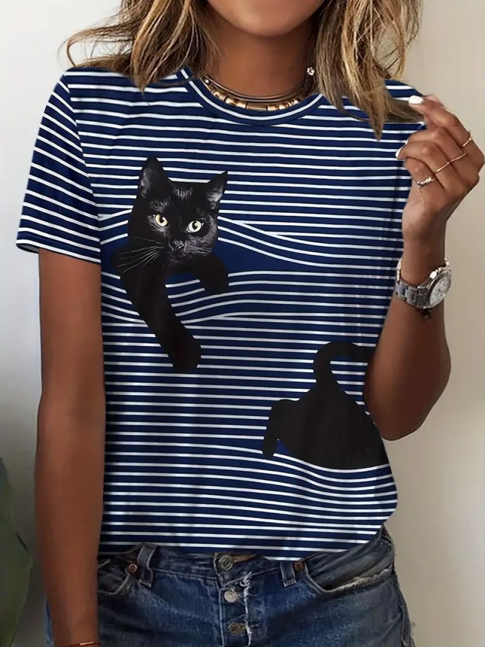 Europäisches und amerikanisches Damen Tie-dye Cat Print Garden Collar T-Shirt