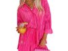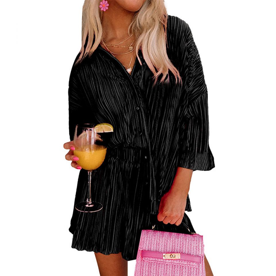 Damen plissiert strukturierte Stoff Anzug lose solide Farbe Shorts zweiteilige Set