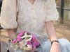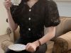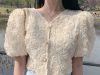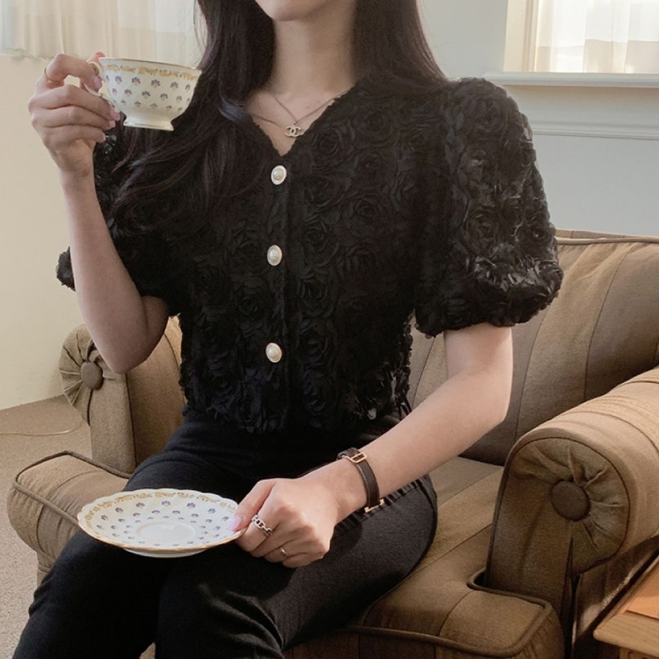 Damen V-Ausschnitt Dreidimensionale Rose Große Perlenschnalle Kurzärmliges Shirt