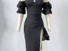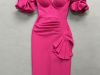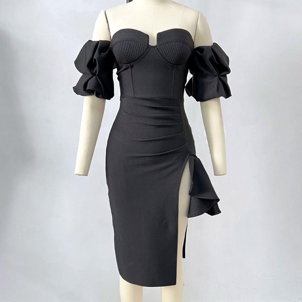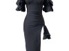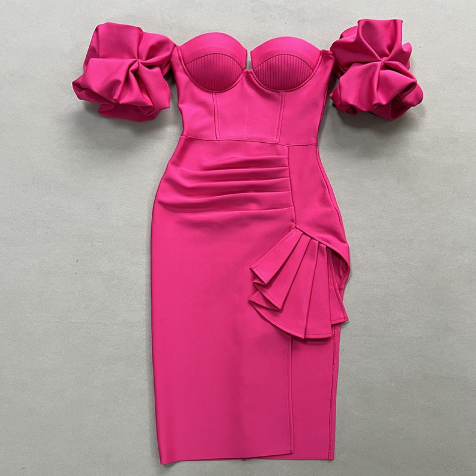 Einfarbiges Bandagekleid mit Laternenärmeln für Damen