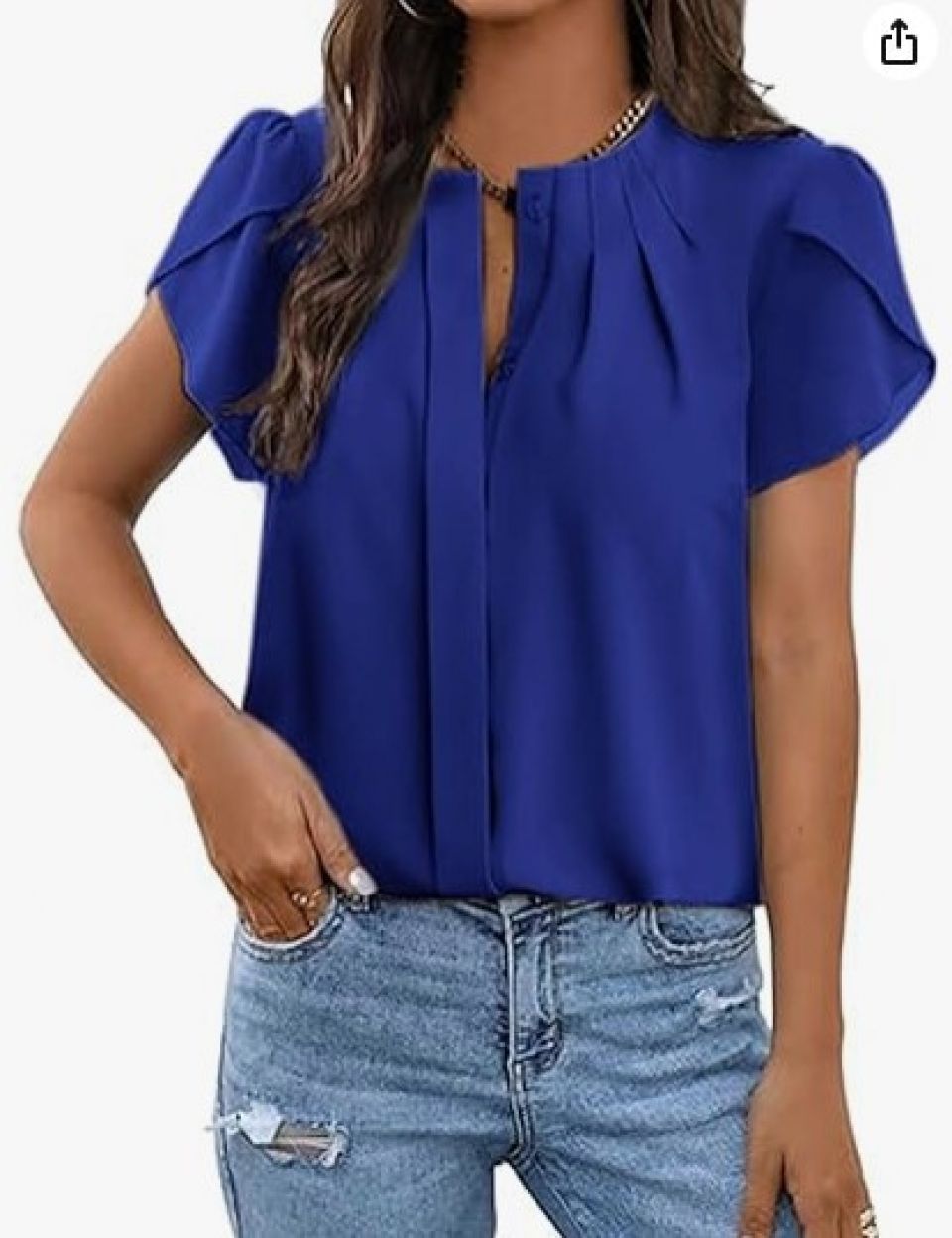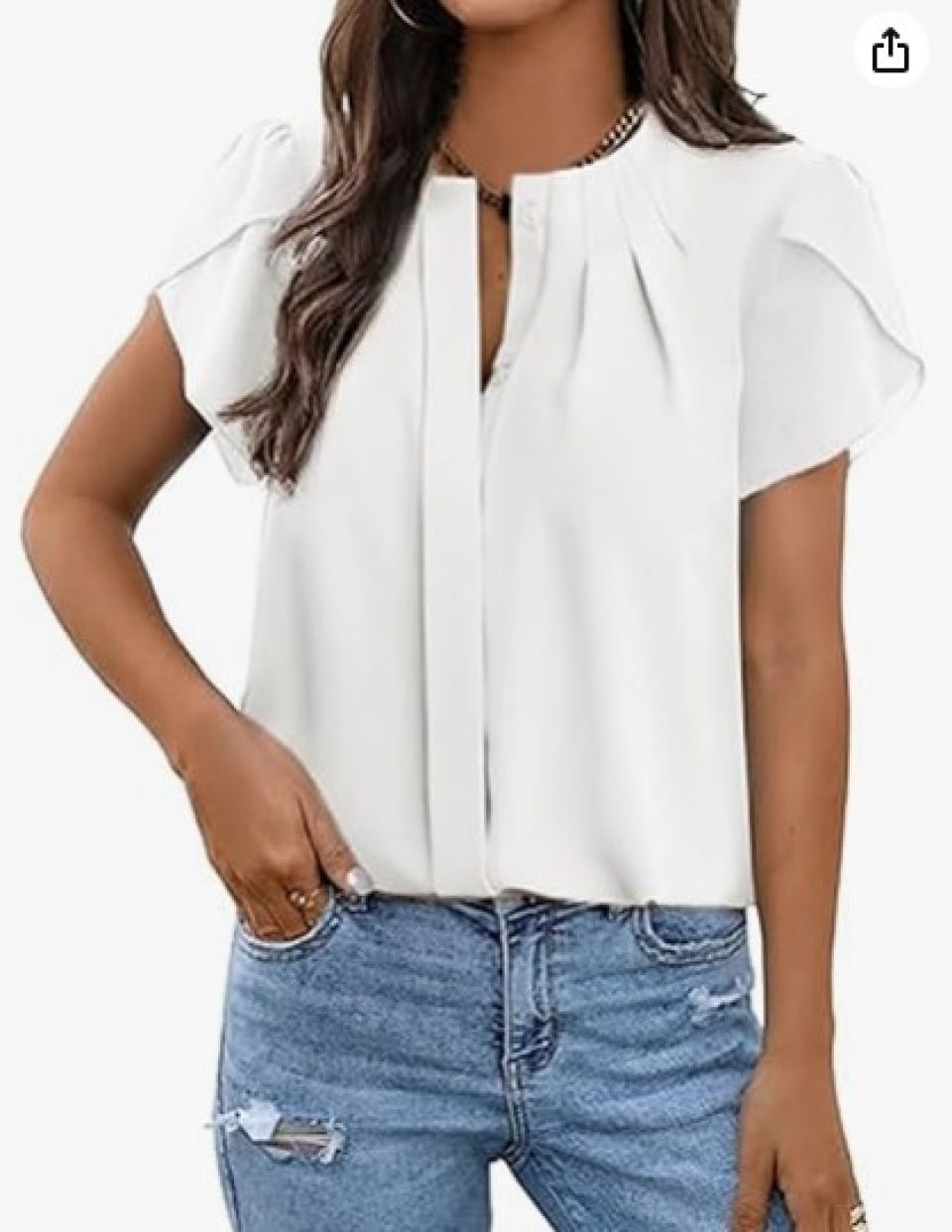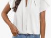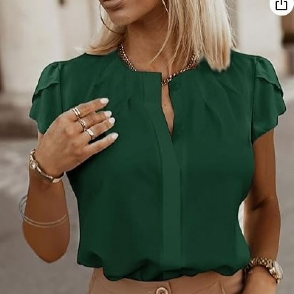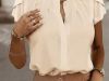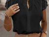 Damen Kragen mit Knöpfen verziert Kurzarm Shirt Casual Top