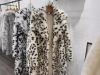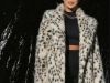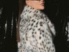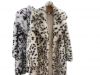 Lang geschnittener Damenmantel mit Leopardenmuster aus Kunstpelz und Fuchspelz mit Kapuze
