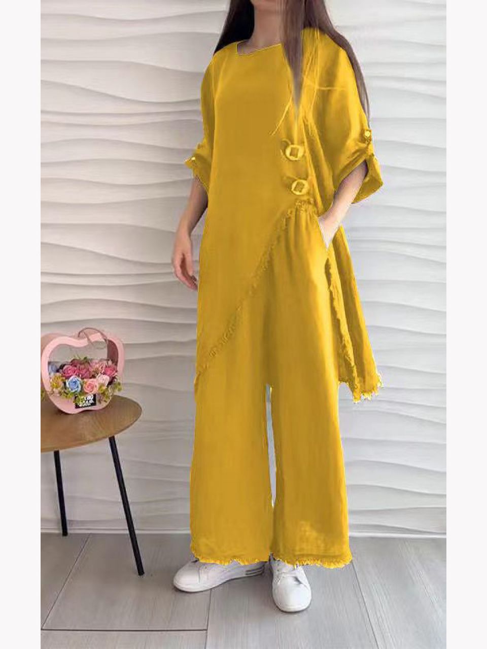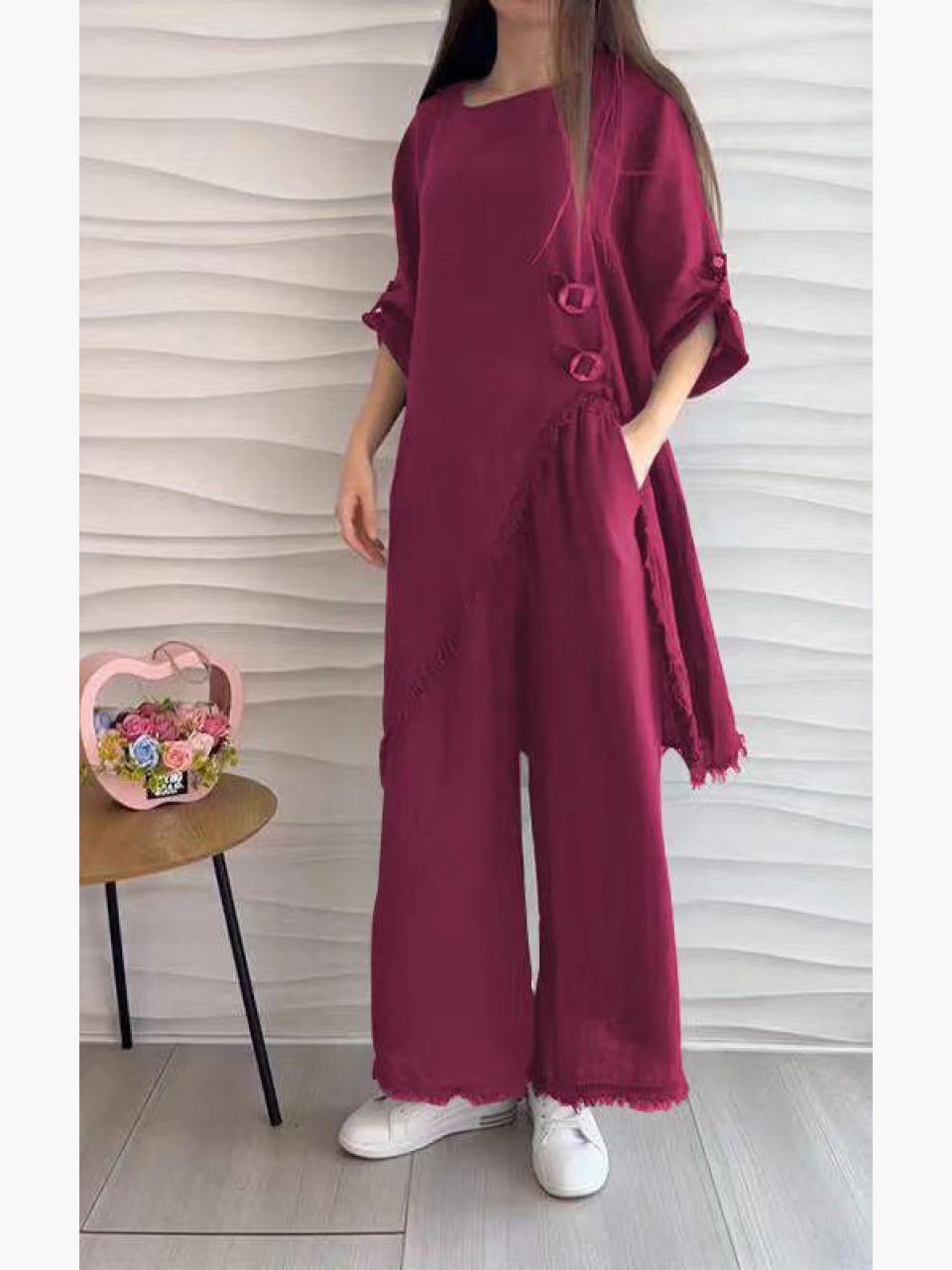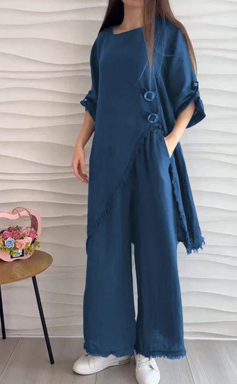 Locker sitzende Hose mit weitem Bein