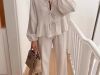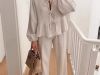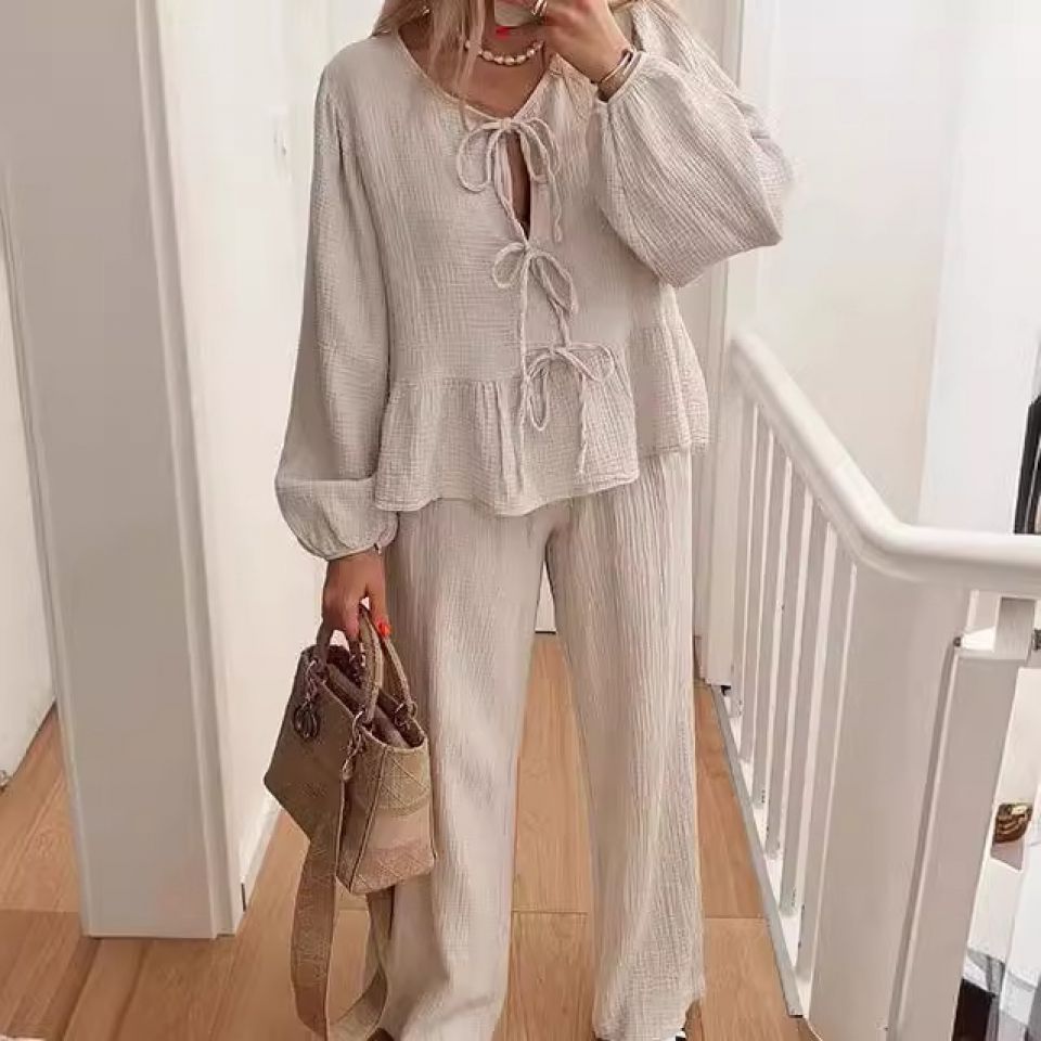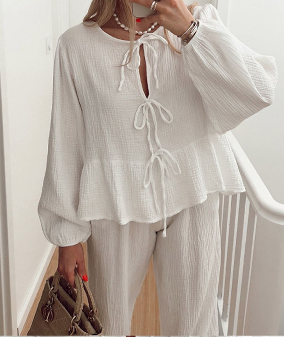 Mode Lässiger Laternenärmel Schnür-Top Anzug