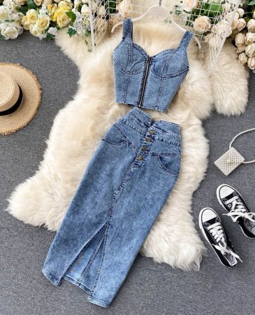 Mode Urlaub lässig gedruckt Weste Rock Zweiteiliges Set