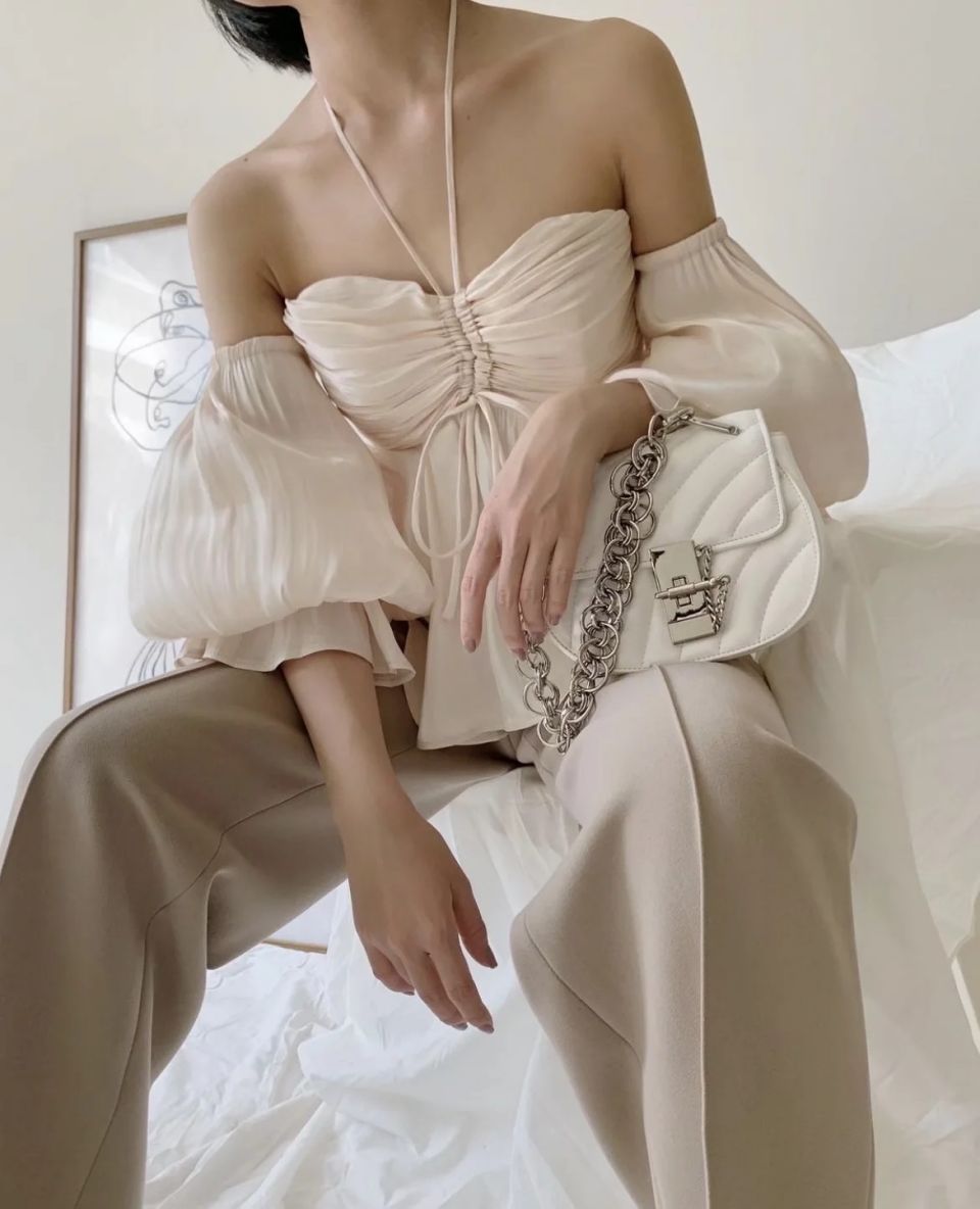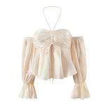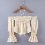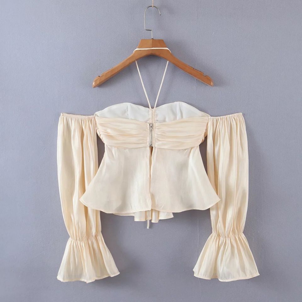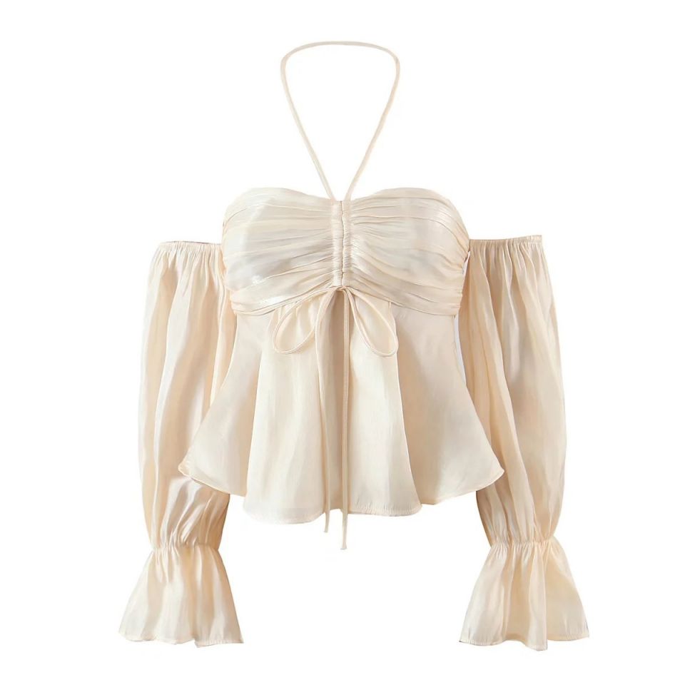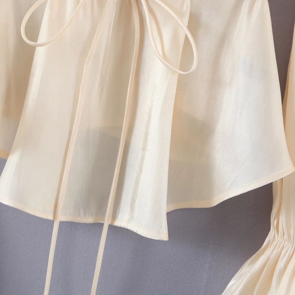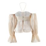 Pure Hot Girl Champagner Aprikosen Perlen Glockenärmel Hemd