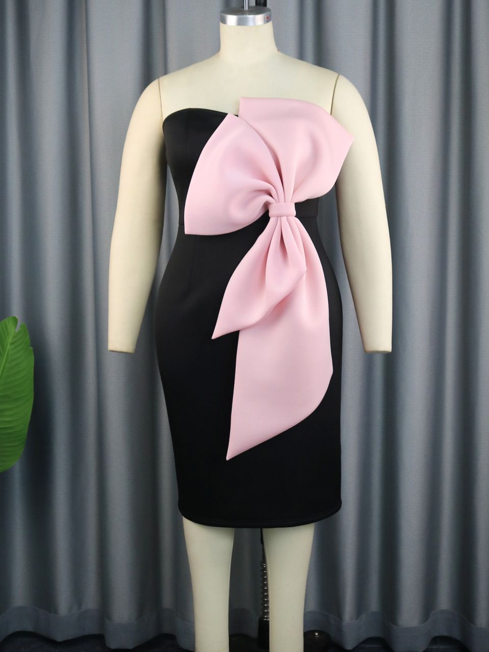 Schulterfreies Top Kontrastfarbenes Schleifenkleid