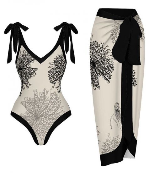 Einteiliger Bikini-Badeanzug mit hoher Taille und Bändern