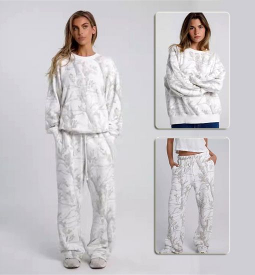 Frauen Camouflage Hoodie Ahornblatt Print Übergroßer Sweatshirt Anzug