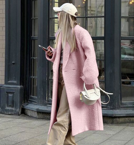 Französischer Wollmantel mit dickem Revers Mittellanger Mantel