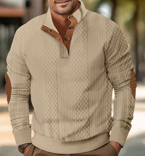 Herren Pullover Halbe Strickjacke Jacquard 3D Drei dimensional