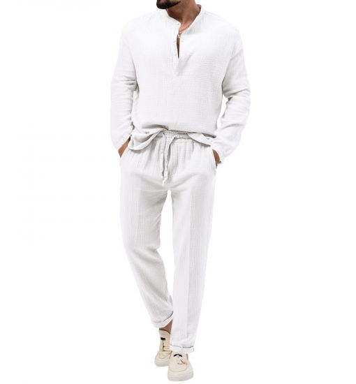 Herren Langarmhemd und Hose in einfarbiger, lässiger Ausführung