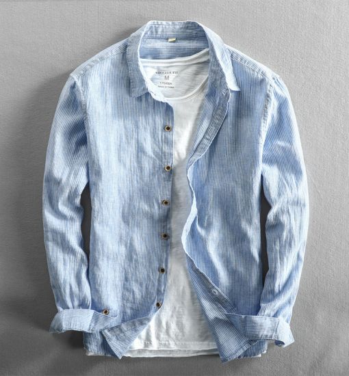 Herren Freizeithemd mit Stehkragen und langen Ärmeln