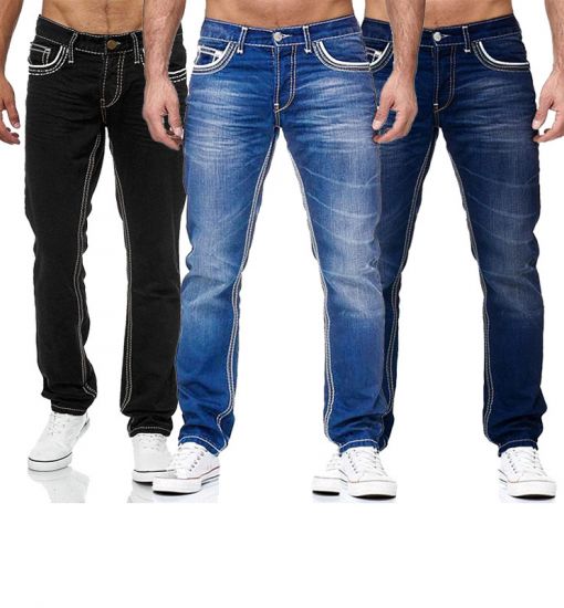 Hochwertige blaue schmal geschnittene einfache schmale Jeans mit geradem Bein