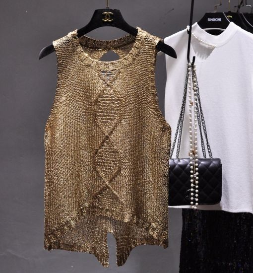 Hollow-out Rundhalsausschnitt Split Pailletten Sling Vest ärmelloses Top