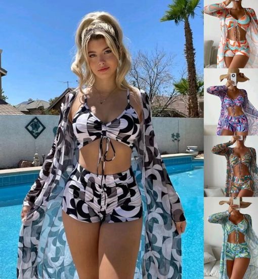 Langärmelige Strickjacke Strand Badeanzug Frauen