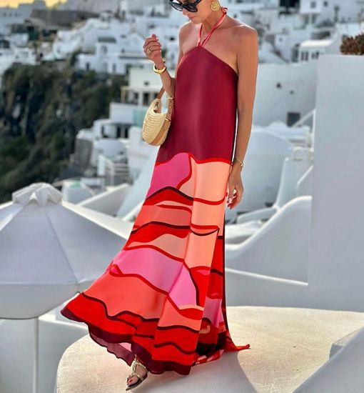 Sexy Print Halter Rückenfreies Mittellanges Kleid