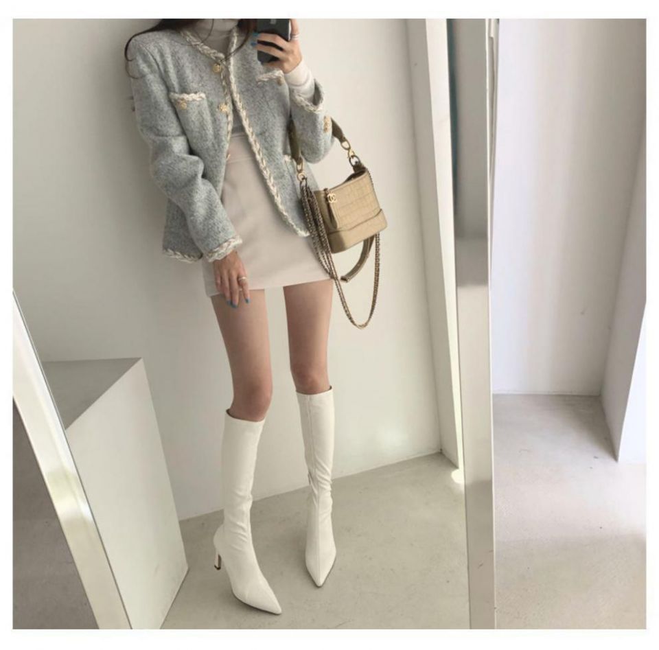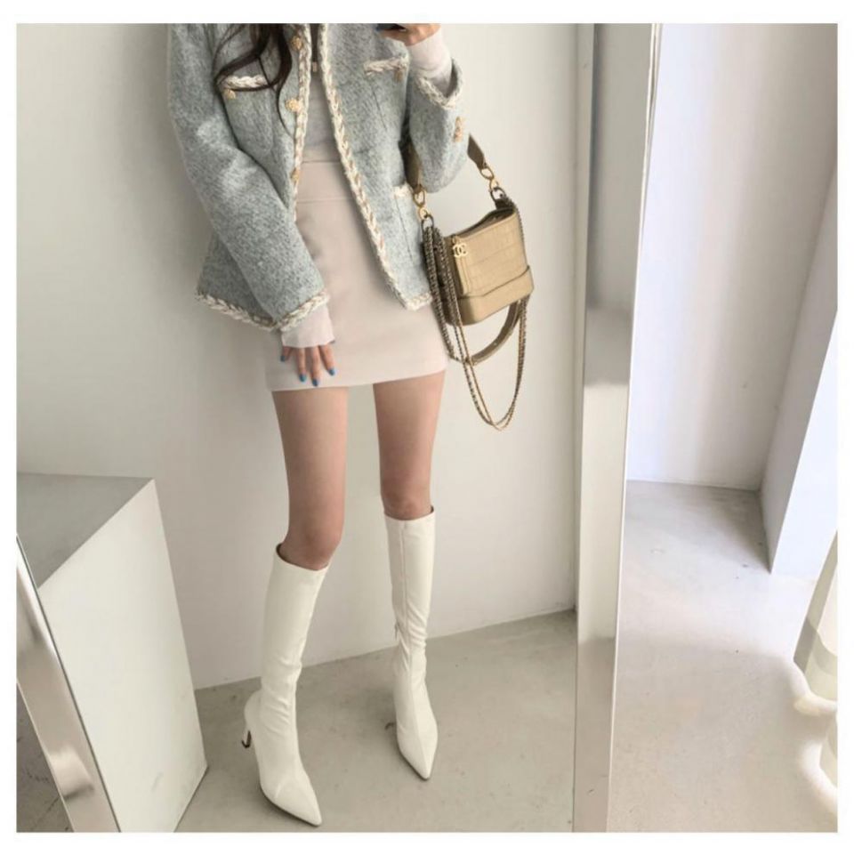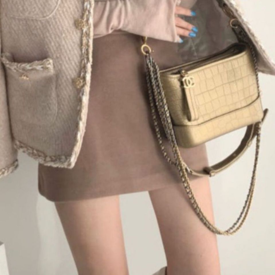 Simple Style Duffle Coat And High Waist Bag Hip Skirt