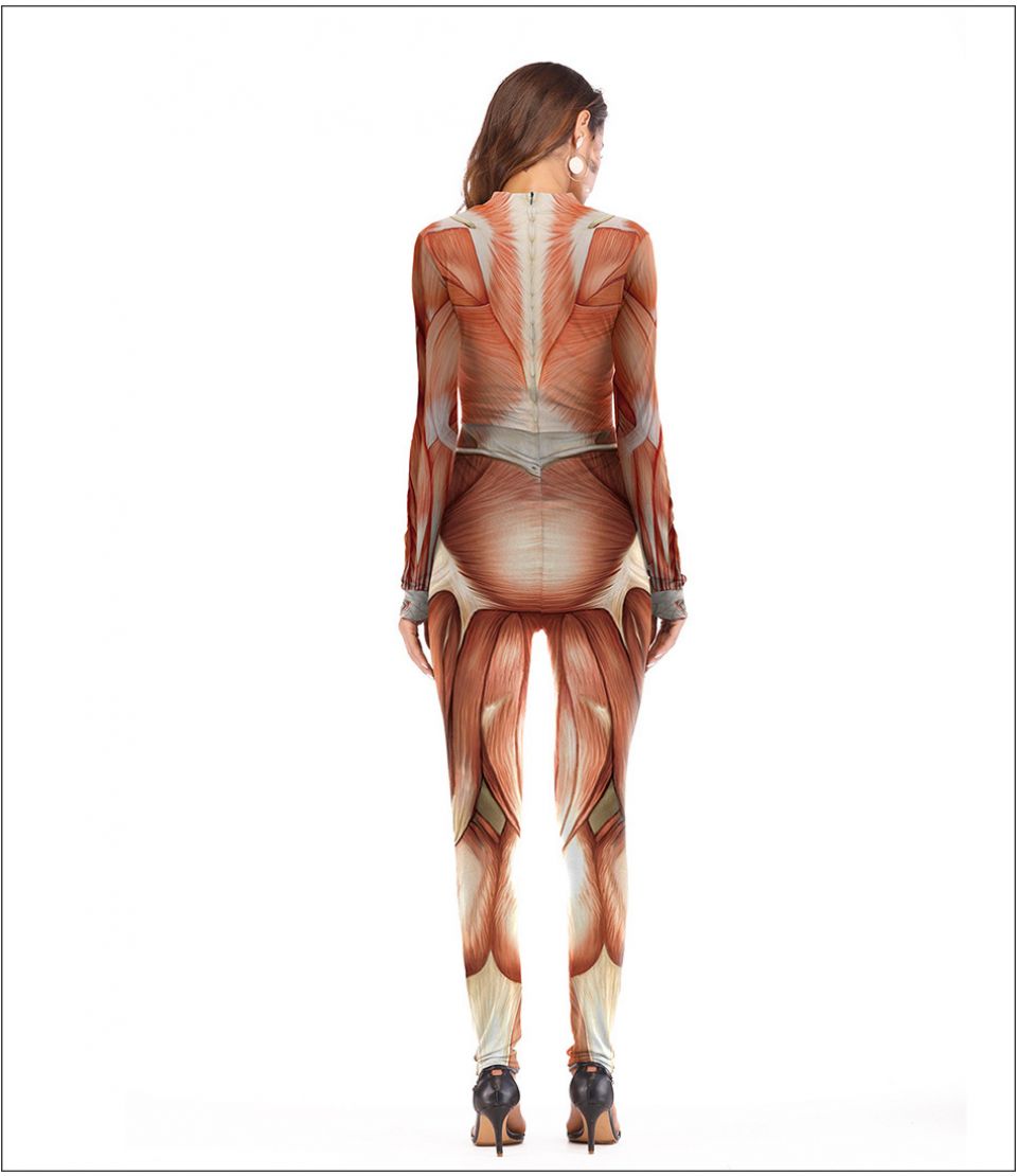 Lustige Kostüme für Bühnenaufführungen, realistische menschliche Körperstruktur, bedruckter Overall