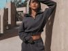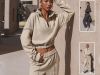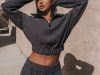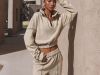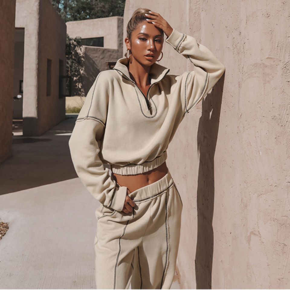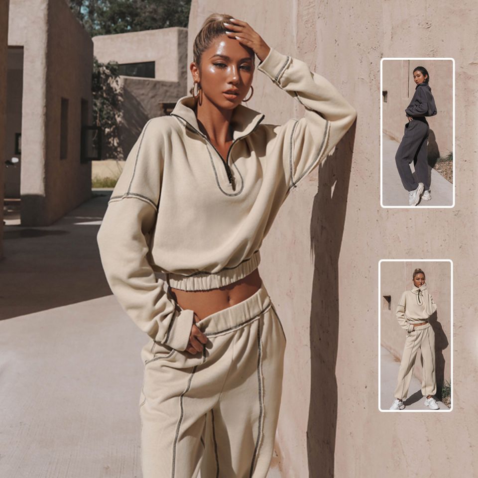 Langarm-Sweatshirt Stehaufmännchen mit Reißverschluss Kurzes Oberteil mit lockerer gerader Hose Damenbekleidung