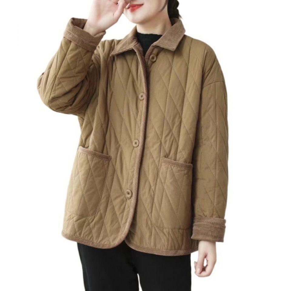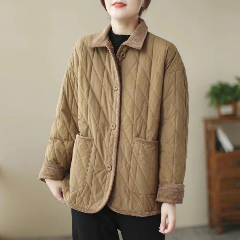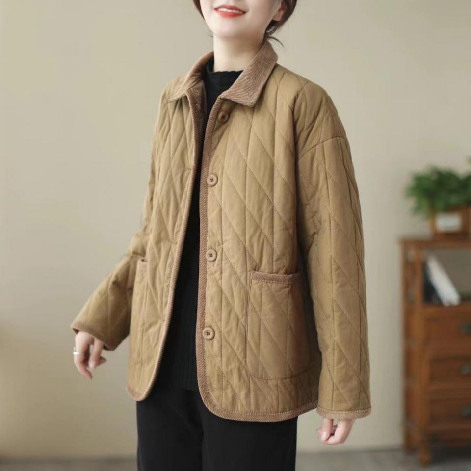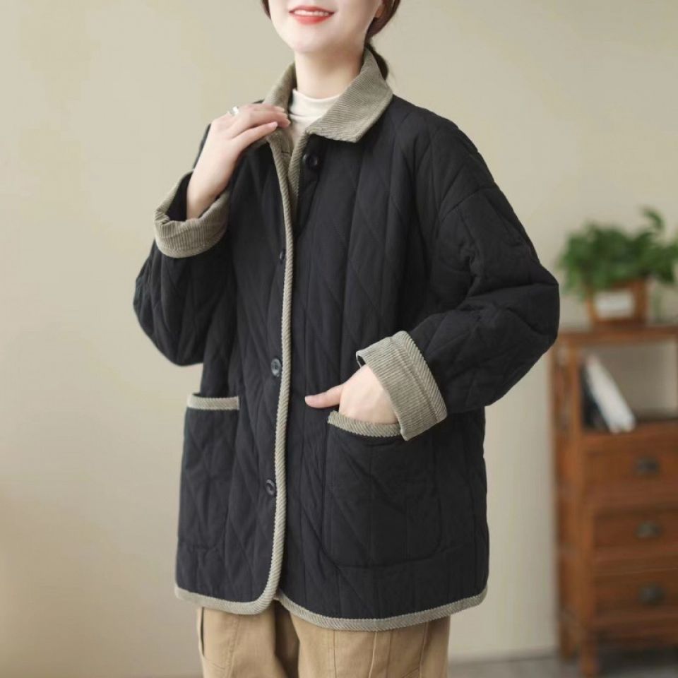 Vintage Collar Cotton-padded Clothes Stitching Rhombic Lapel Cotton-padded Loose Jacket