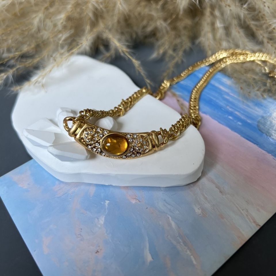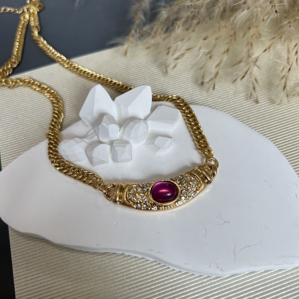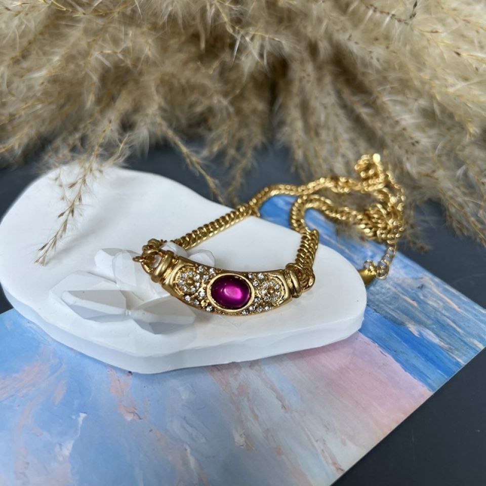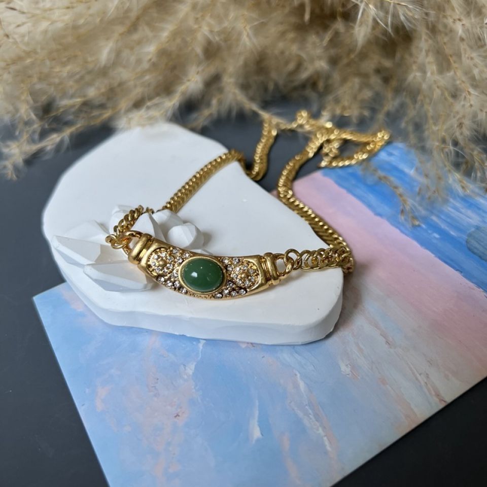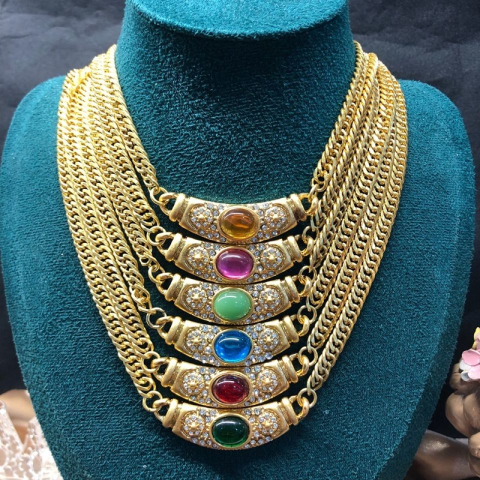 Frauen Kupfer Kette Vintage farbigen Edelstein Glas Halskette