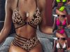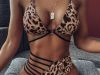 Zweiteiliger Neckholder Bikini Leopard Print Cutout Strap Badeanzug Set Sommer Strand Damenbekleidung